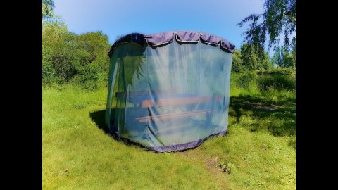 Лавочки і лава виготовлені з дошки карпатської смереки, обробленої антисептиком Renner, покритої лаком Renner (Італія). Промисловий меблевий лак з водовідштовхувальними присадками, стійкістю до ультрафіолету і різних погодних умов гарантує довговічність у важких умовах експлуатації. Колір тенту "Індиго" чудово гармоніює з кольором каркасу і даху.